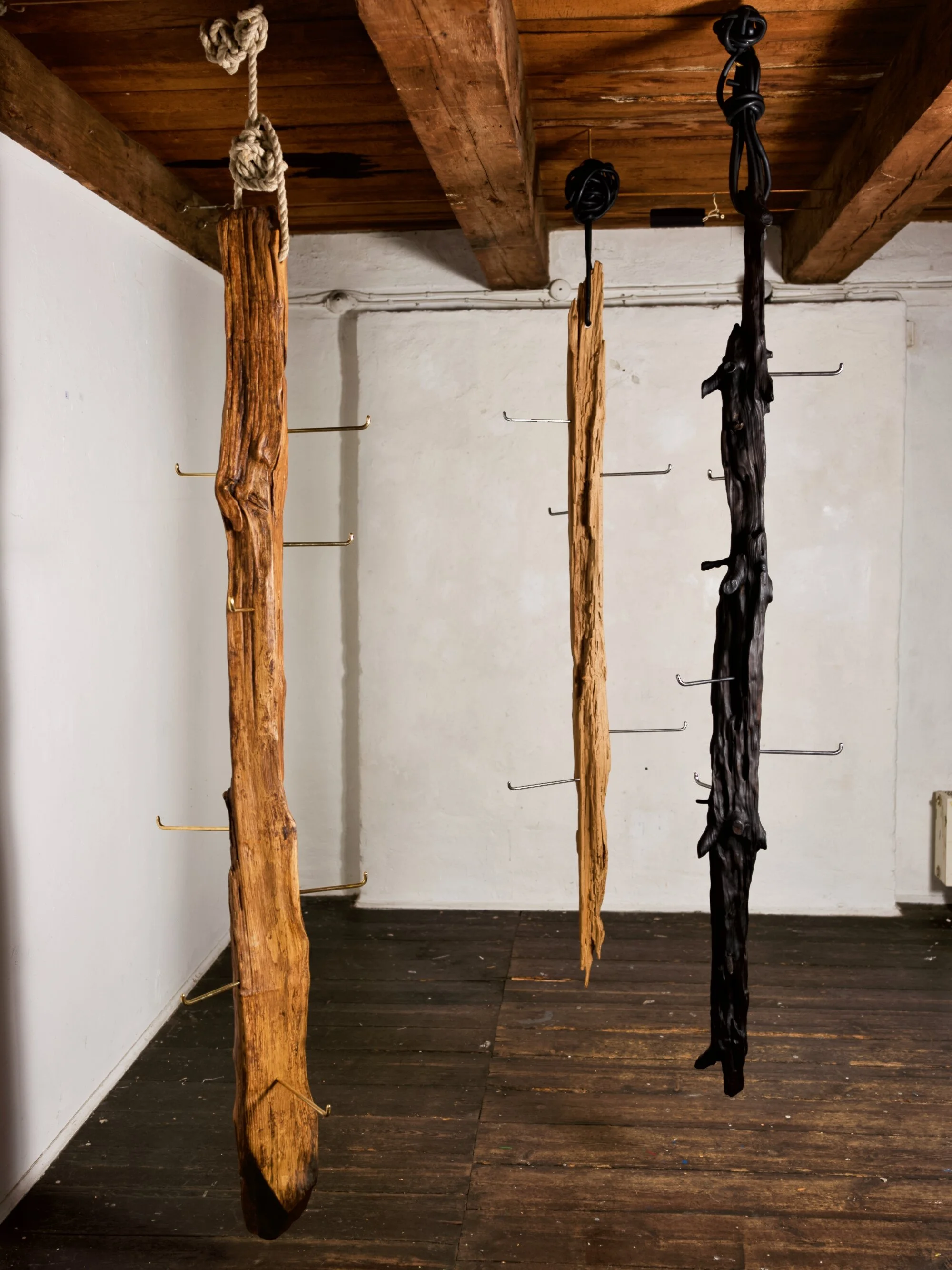 The exhibition Essential Furniture Objects displays a combination of furniture-like and sculptural objects. The essence of all the objects are their textural quality and history. Most of the objects are made from wood found in nature exposed to sun, wind and water. The focal point is the creation of objects appealing to the human need for aesthetic stimulation.