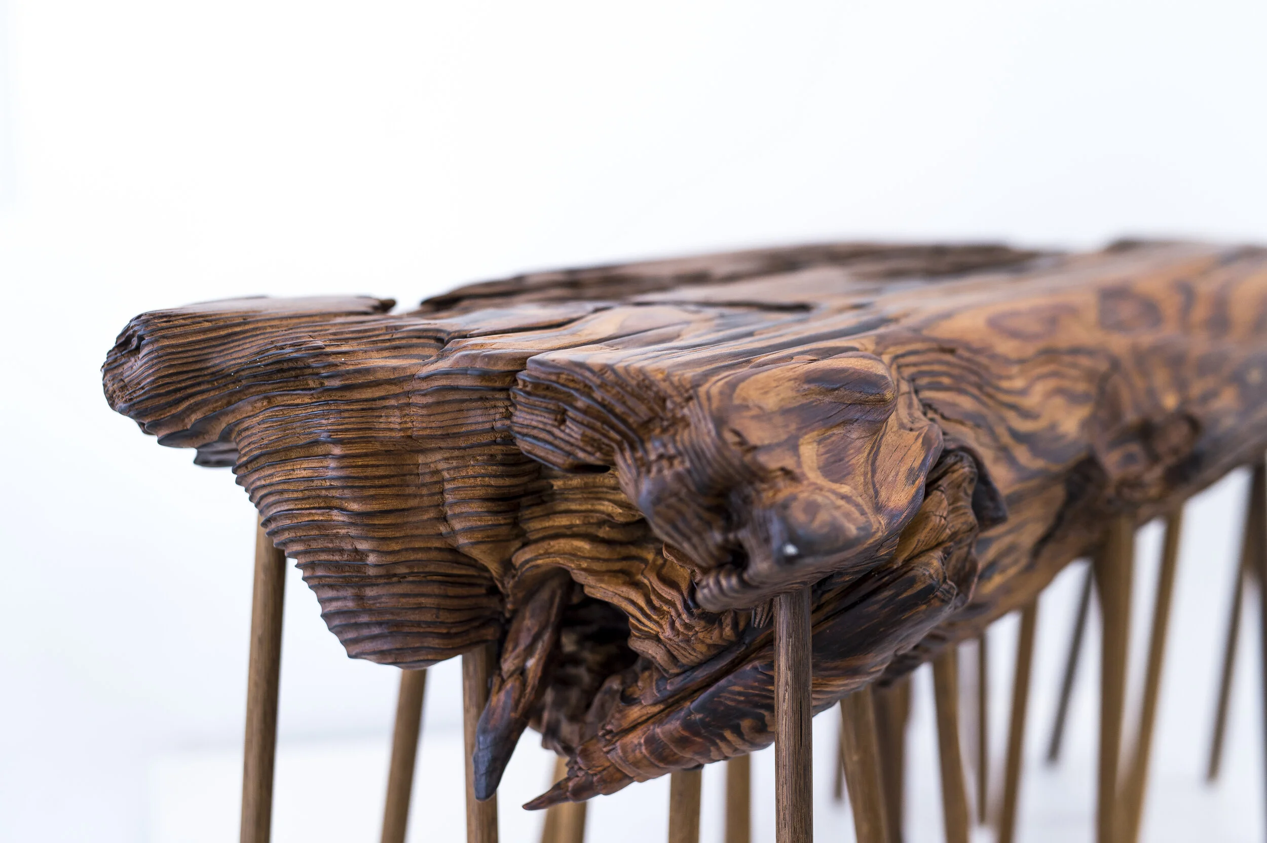 The natural beauty embedded in the decayed and eroded wood is consciously utilized as an aesthetic tool that immediately appeals to our senses. Thus the objects function as an opening for a narrative about an ecological aesthetic. In this potential field, the intention is to sharpen the awareness around lifespan and fine balanced biological contexts.