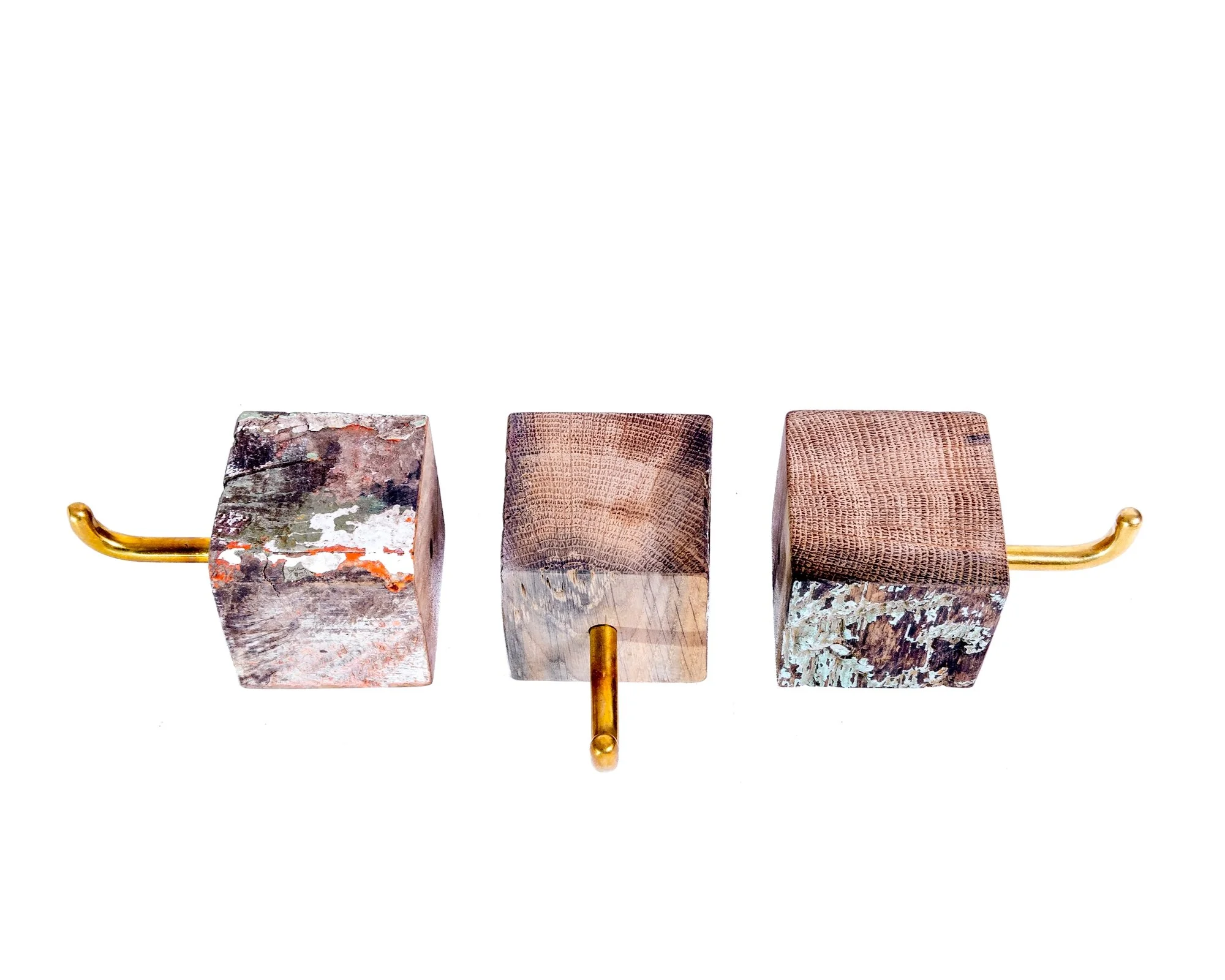 The objects can be seen as exclusive sculptural forms, simultaneous several of the objects have a functional feature. For example, rotten pieces of trunks become so called ‘Hangers’ - a kind of hanging mute servants, hung in rubber straps or hemp ropes and fitted with long thin hooks of brass or steel. These 'Hangers' are basic sculptures and at the same time functional mute servants, depending on the eyes that see.